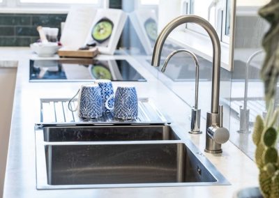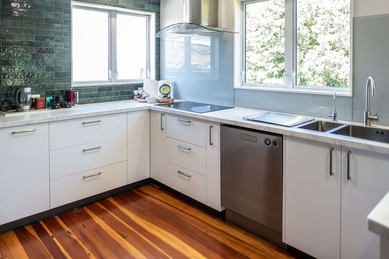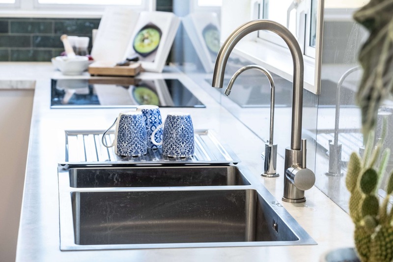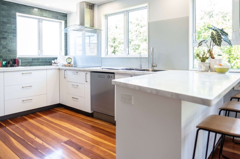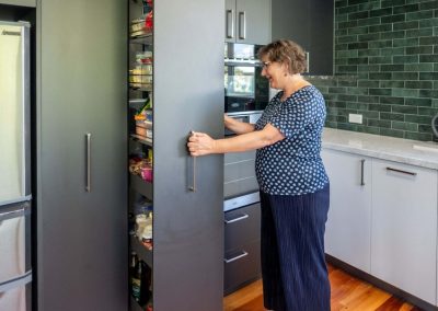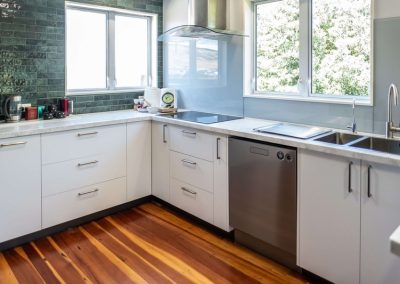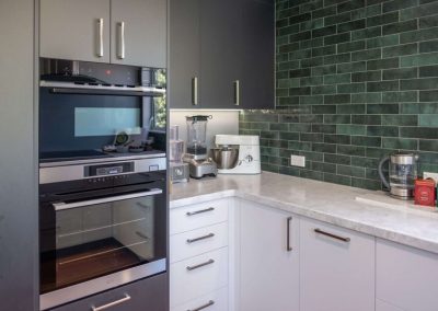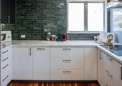 The gorgeous green tiles are a beautiful design feature which worked really well with the original timber flooring. We teamed the tiles with a subtle glass splashback behind the hob and sink for ease of cleaning.